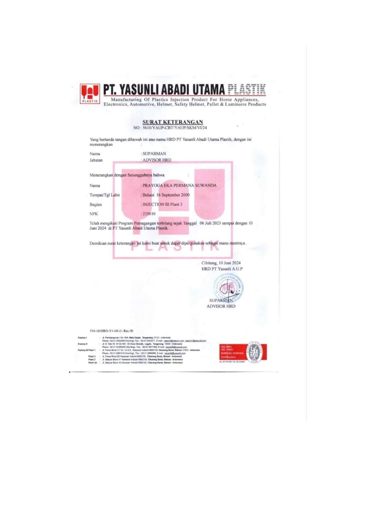 I have expertise in the operation of the regulation of the Injection Molding, including the mold, monitoring the process, and light care to ensure product quality. In addition, I have expertise in programming operations and CNC machine, including the program G-Code and M-Code, the machine, and troubleshooting to ensure engineering results according to quality standards. Technical design making AutoCAD use. Mastery of Microsoft Office for the administration and reporting. As well as, development and management of WordPress including customization theme based website, installation plugin, and optimize SEO. With combinations of technical expertise and digital I have, I am sure could give positive contribution for the company.